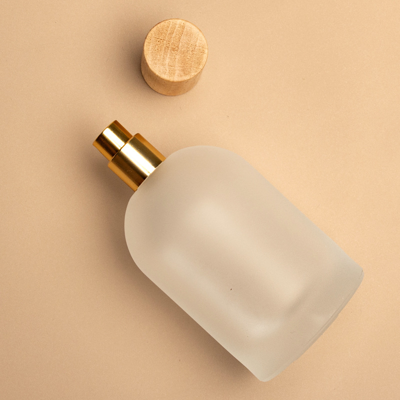 This 100ml frosted glass bottle features a bamboo or beechwood lid for a refined look. The push-to-dispense fine mist spray creates a delicate mist that's perfect for dispensing perfume or hydrating to the skin. It's both practical and refined.