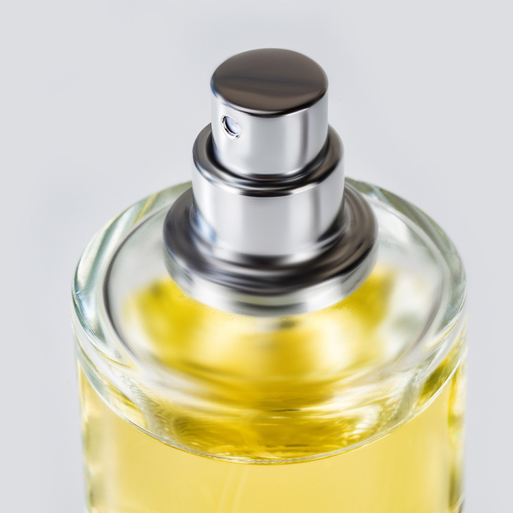 Manufacturer's Wholesale 50ml cylindrical glass perfume bottle with a premium snap-on design for leak-proof performance. The fine spray is perfect for dispensing cosmetics, and the transparent bottle creates a refined look. Buying empty bottles in bulk is a great option for a more economical purchase.