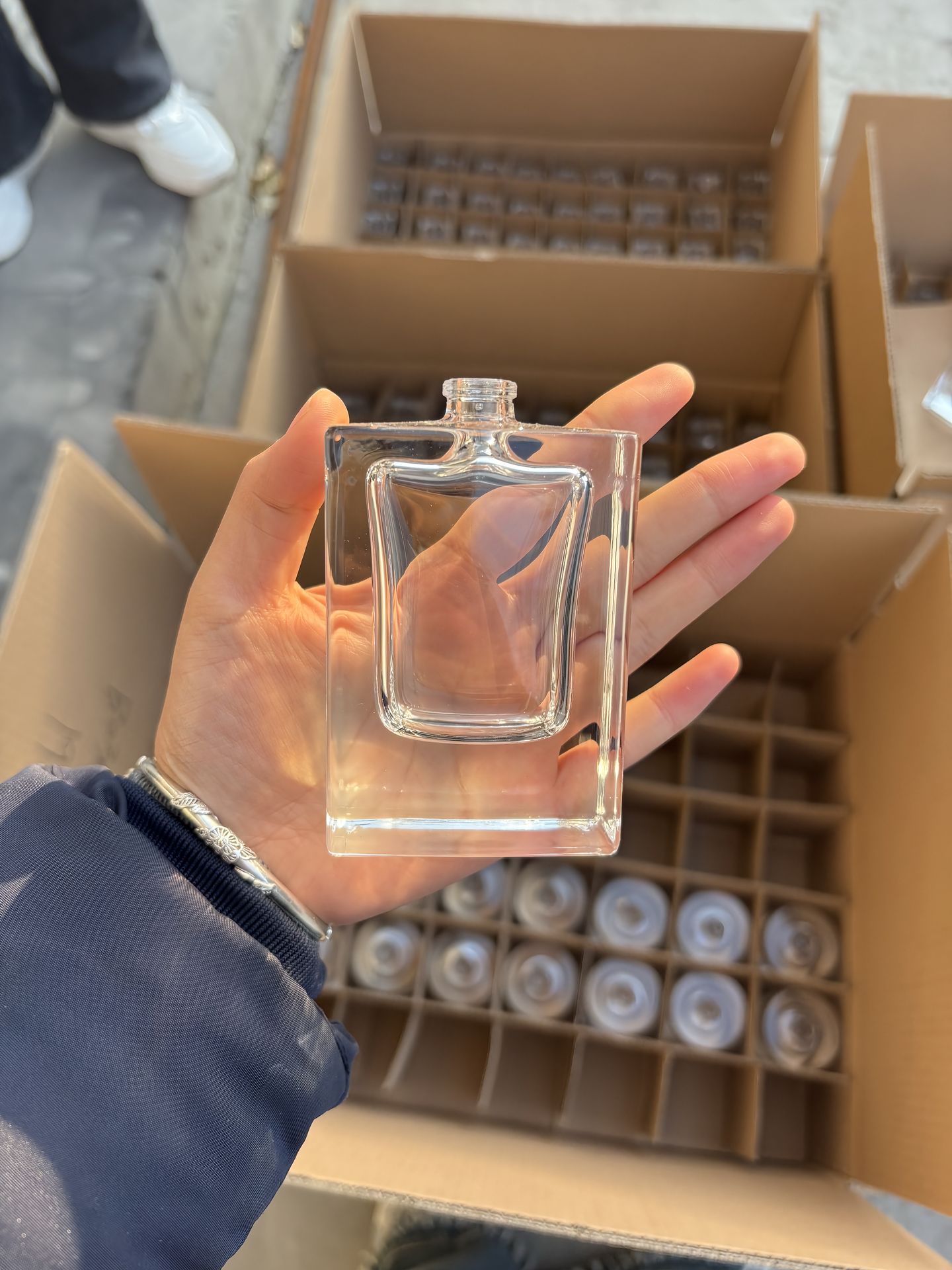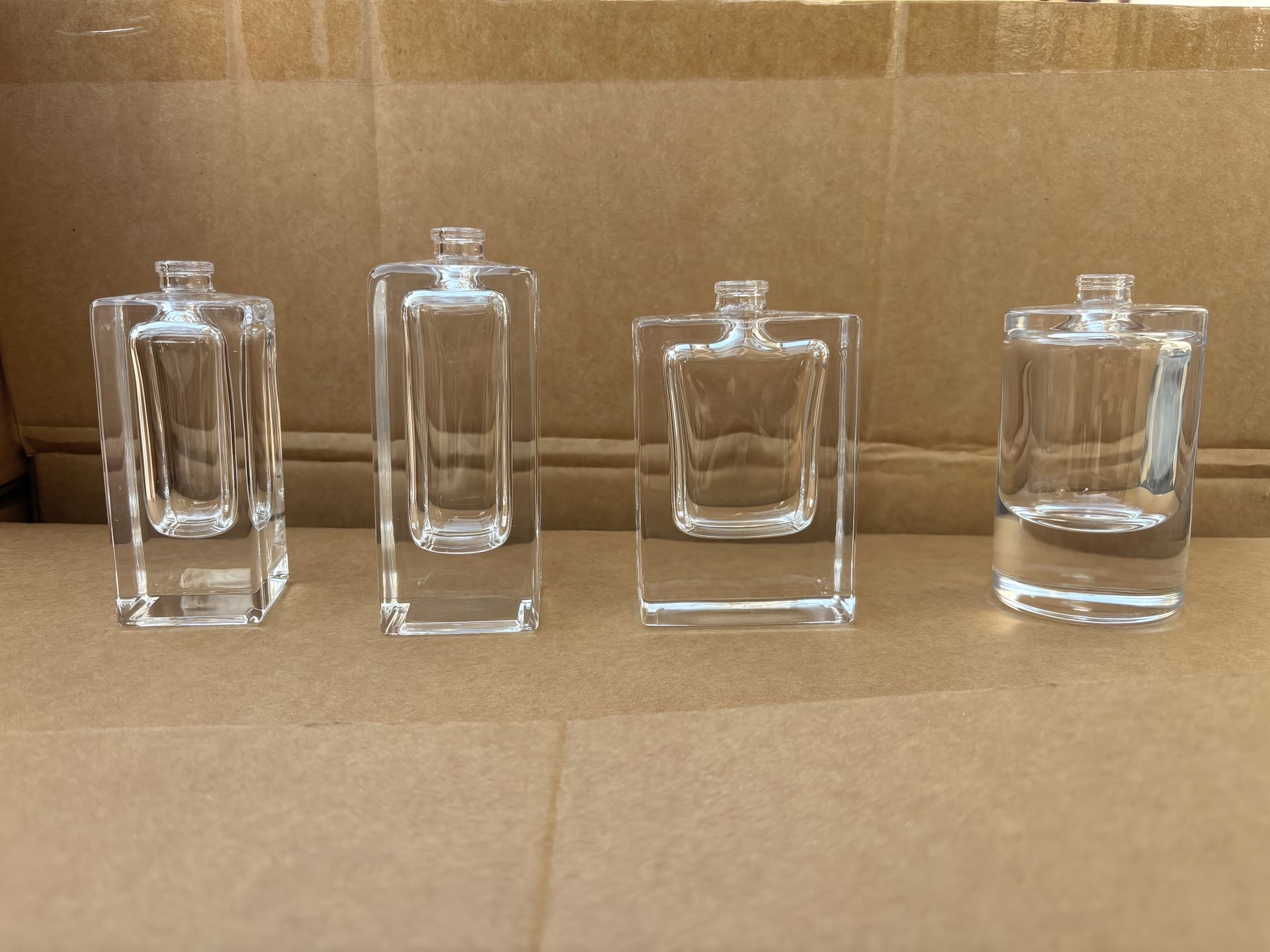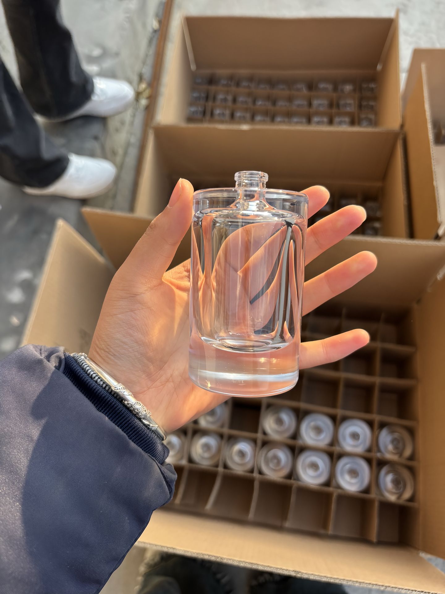 A crystal-clear glass perfume bottle, a custom order from a client.