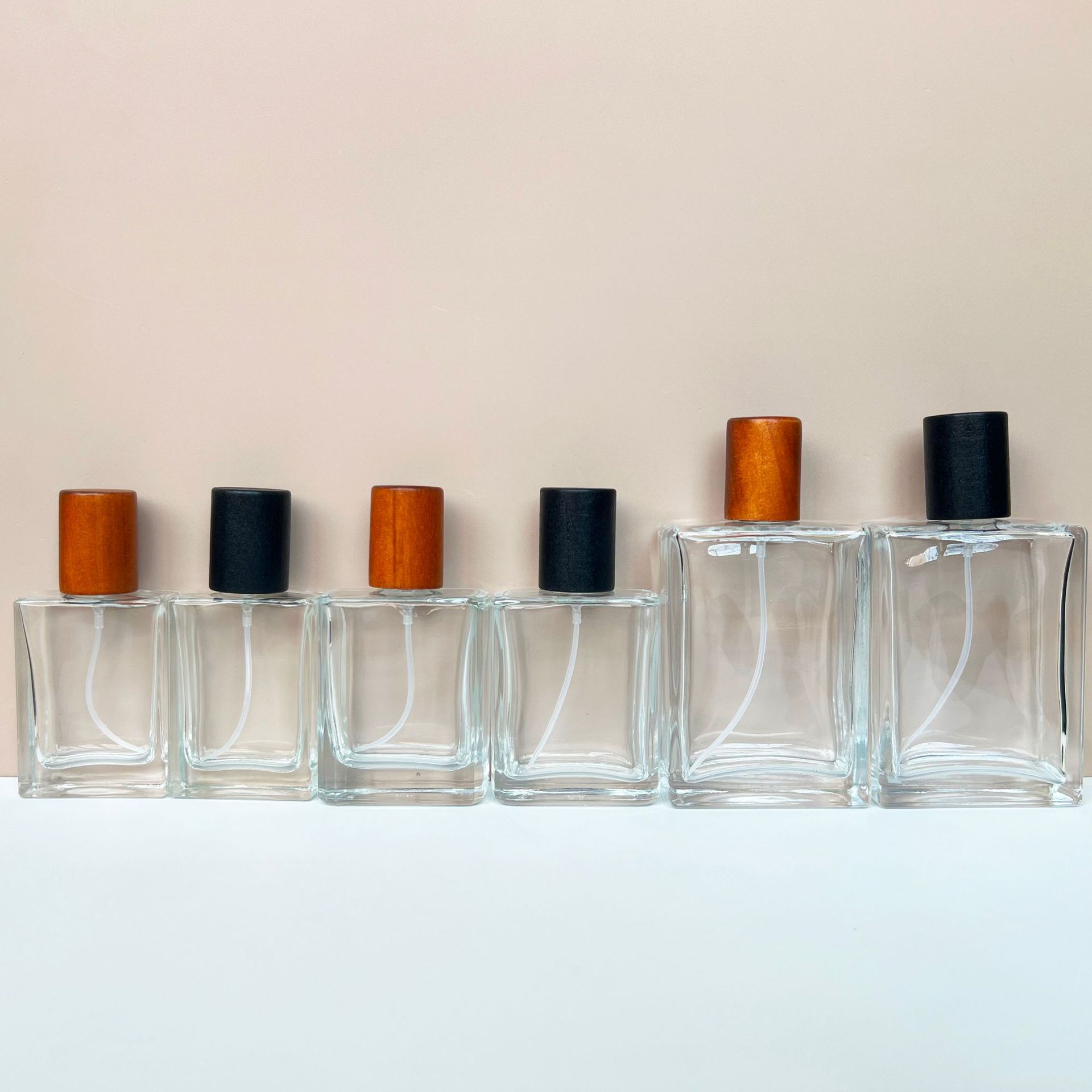 MORE>In stock: 30/50/100ml square glass perfume spray bottles.……