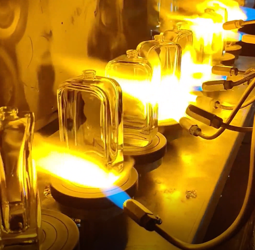 Demonstration of the small-mouth glass perfume bottle blowing and pressing process.……
