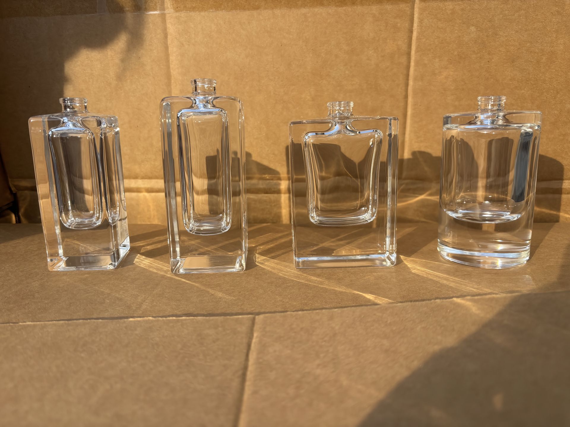 A crystal-clear glass perfume bottle, a custom order from a client.……